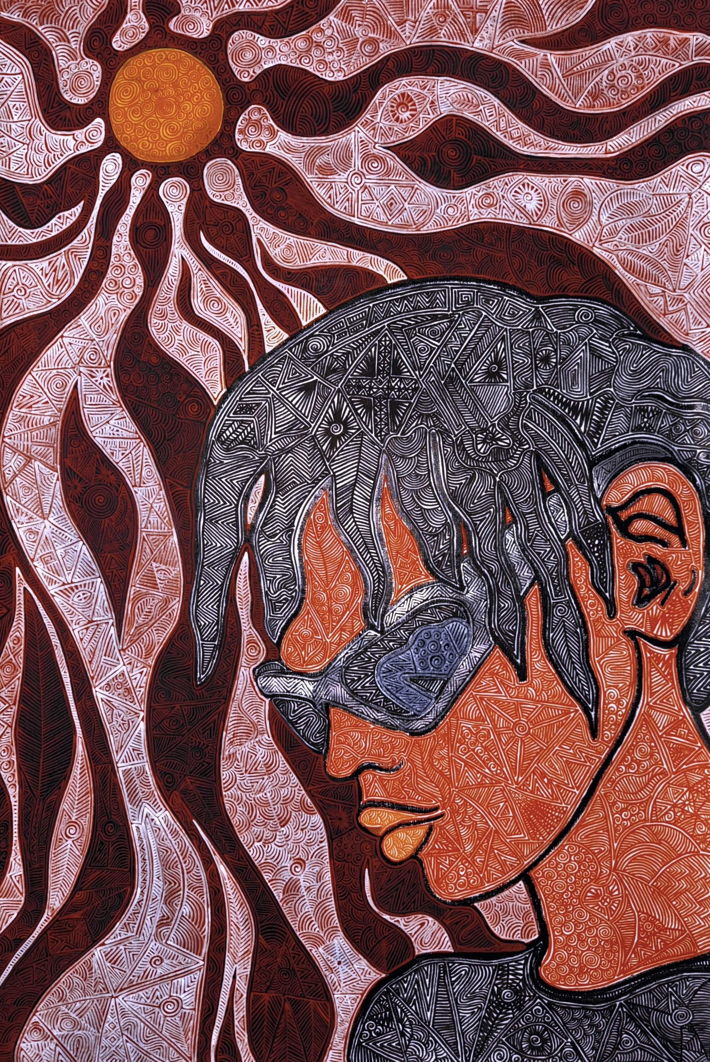 Oil and Oil Marker on Canvas